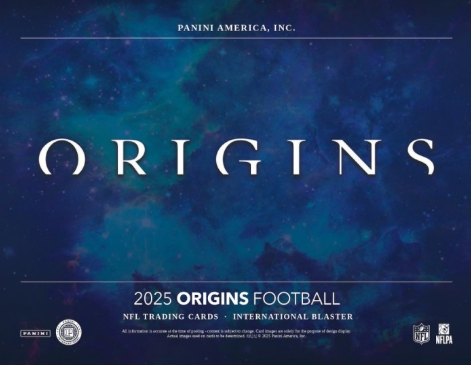 Origins Football is back in 2025 with incredible artistry of the NFL's biggest stars, rookies, and legends. It's beautifully illustrated throughout the base, rookies and insert sets, headlined by the likes of Original Gridiron, Big Bang, and Fons et Origio. Look for International Blaster Exclusive Rookie Holo parallels!