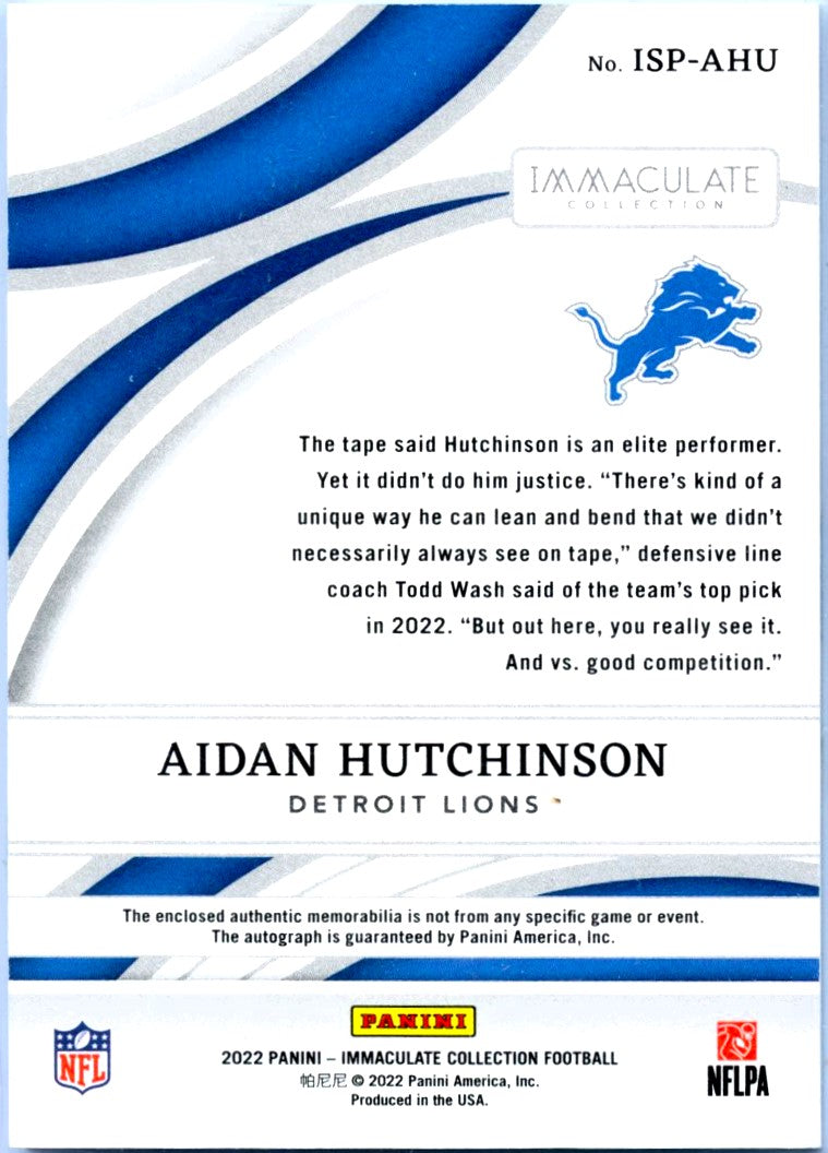 Aidan Hutchinson RC 2022 Immaculate Dual Rookie Patch Auto SP 71/99