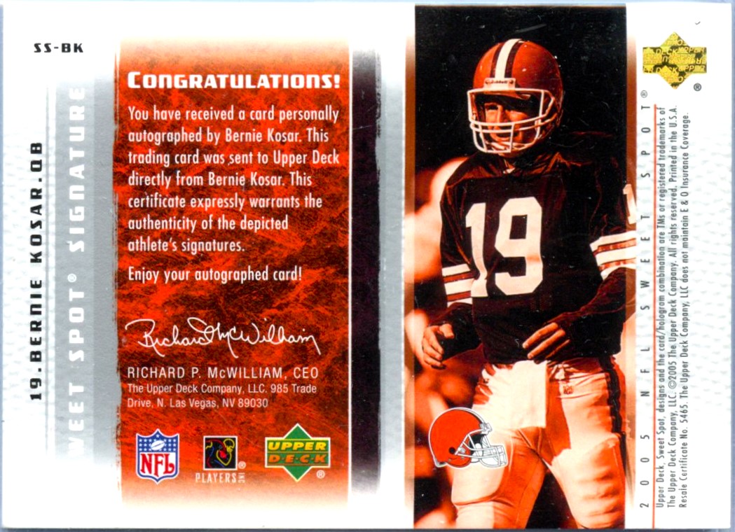 Bernie Kosar 2005 Upper Deck Sweet Spot Helmet Auto