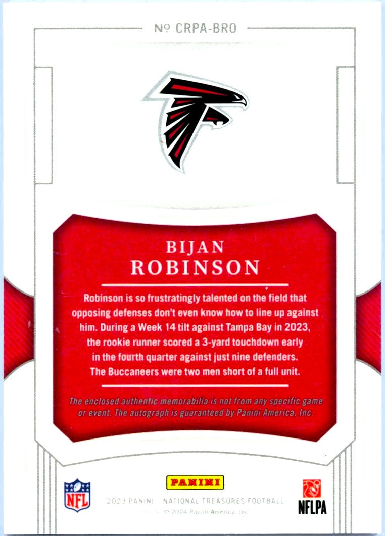Bijan Robinson RC 2023 National Treasures Red Laundry Tag Rookie Patch Auto SP 3/5