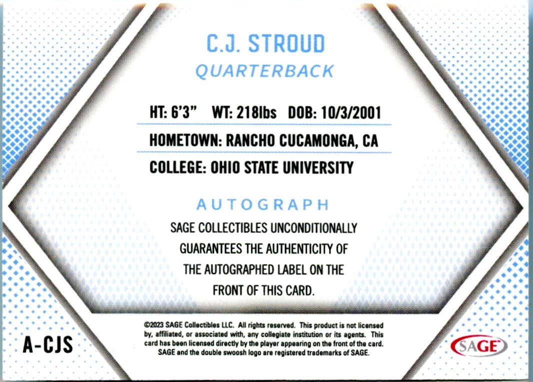 Cj Stroud RC 2023 Sage Hit Rookie Signature Auto