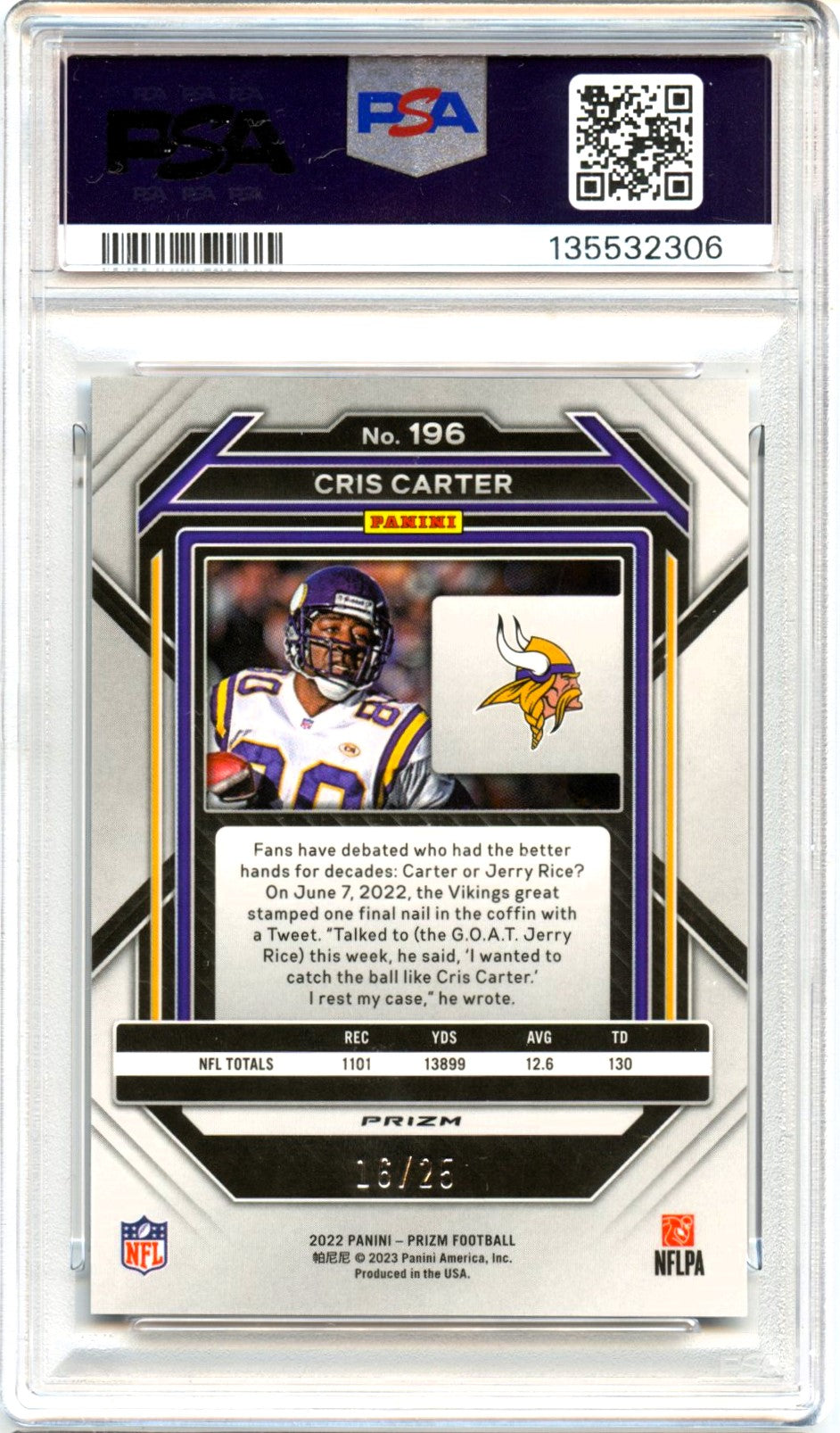 Cris Carter 2022 Panini Prizm Navy Camo SP 16/25 PSA 10