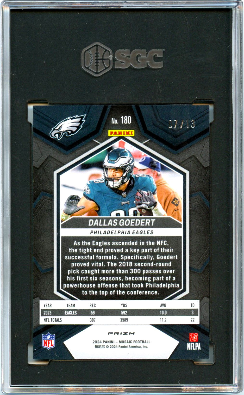 Dallas Goedert 2024 Panini Mosaic Green Swirl Prizm SP 7/13 SGC 10