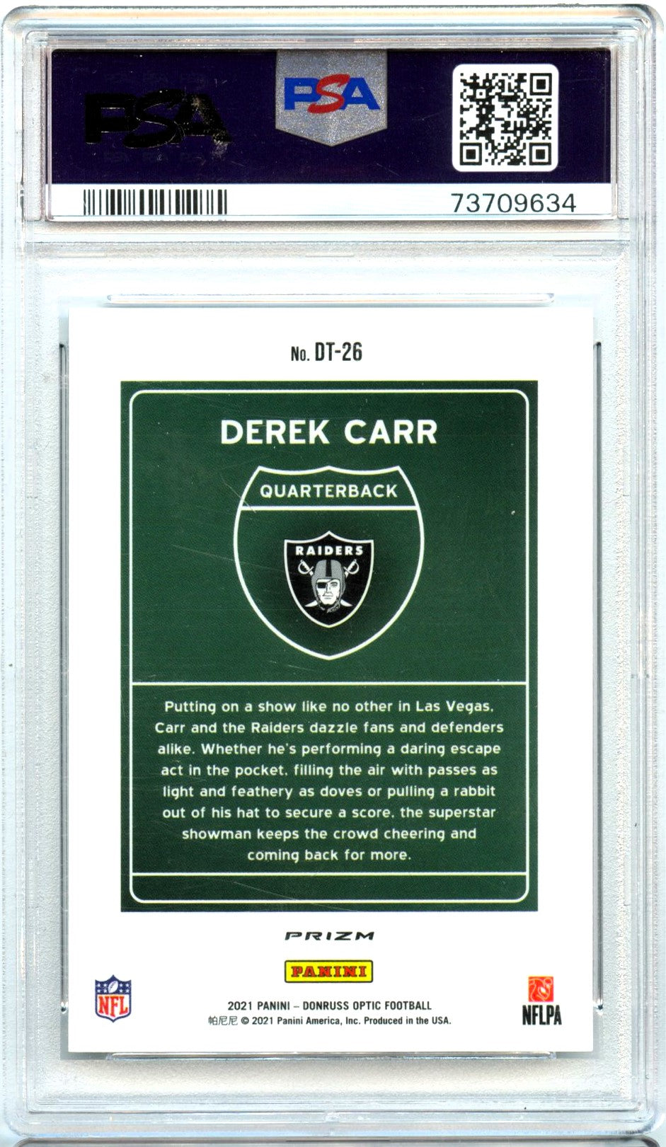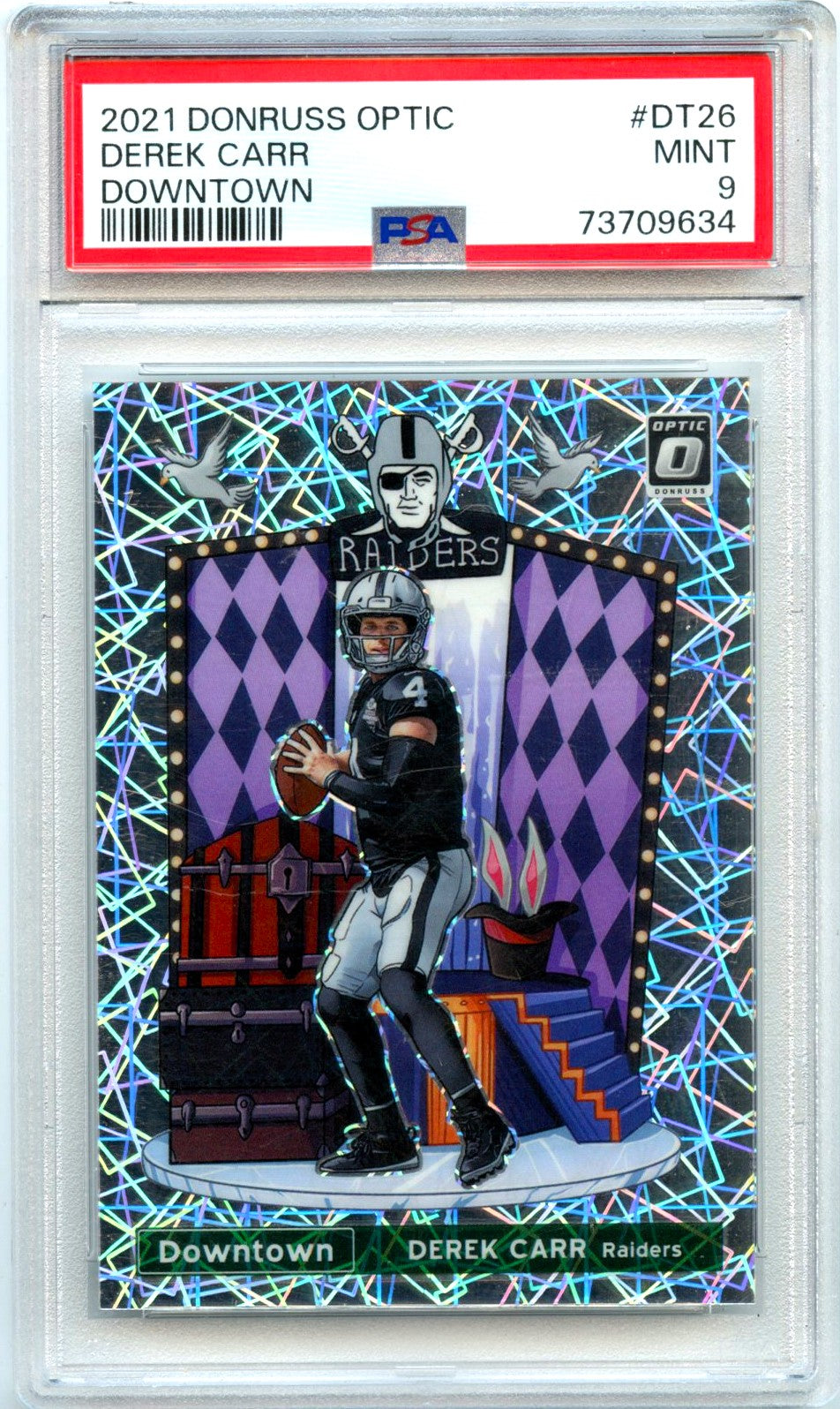 Derek Carr 2021 Donruss Optic Downtown! Case Hit SSP PSA 9