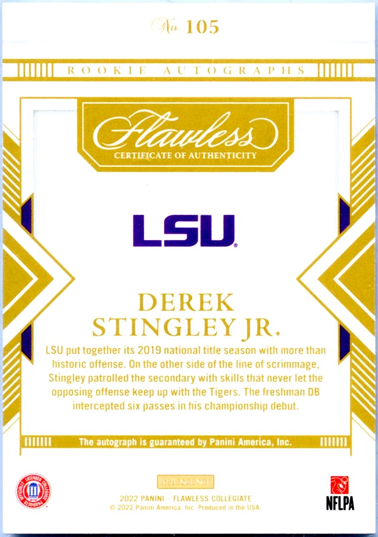 Derek Stingley Jr RC 2022 Flawless Collegiate Red Rookie Auto SP 2/20