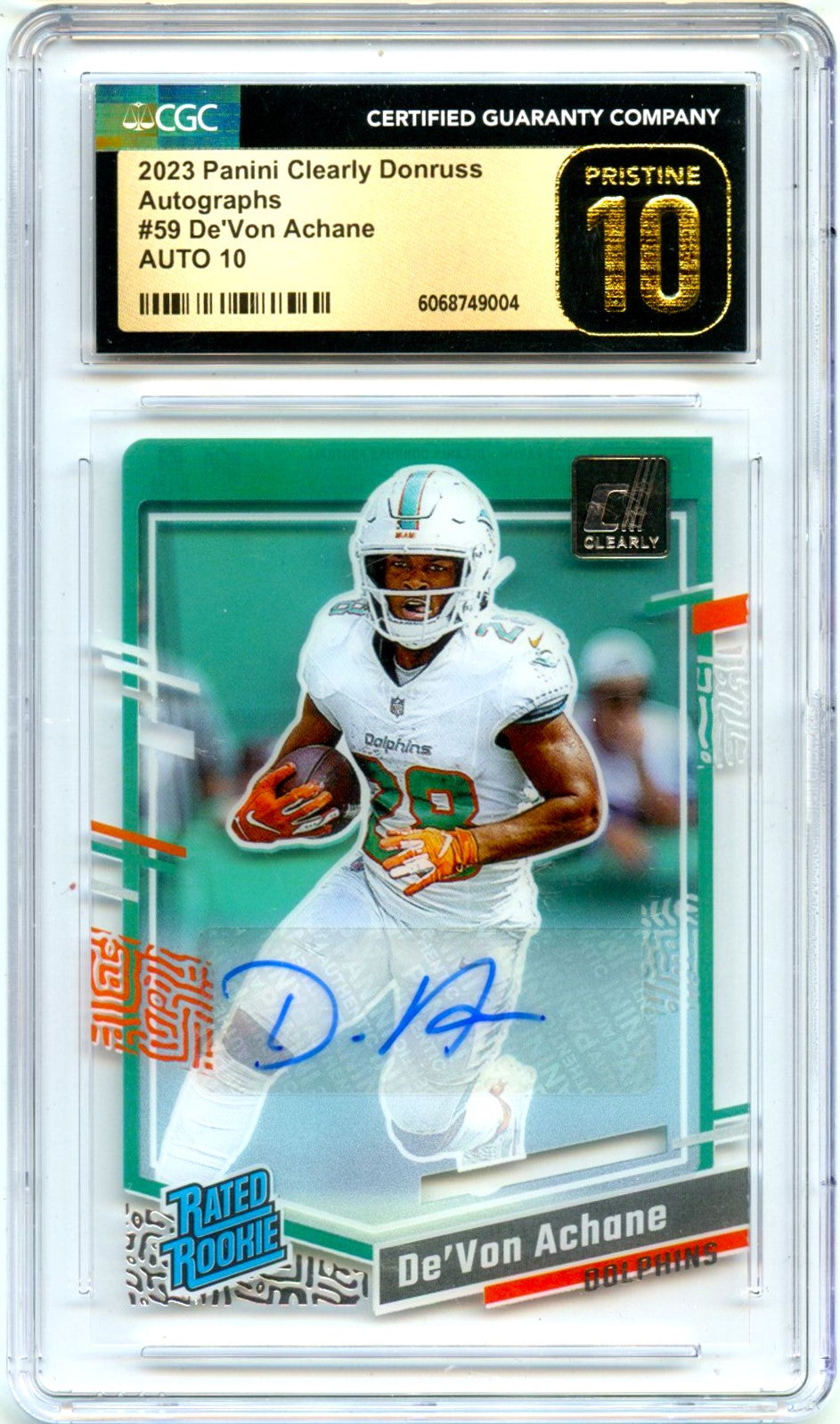 De'von Achane RC 2023 Clearly Donruss Rated Rookie Auto #59 CGC 10