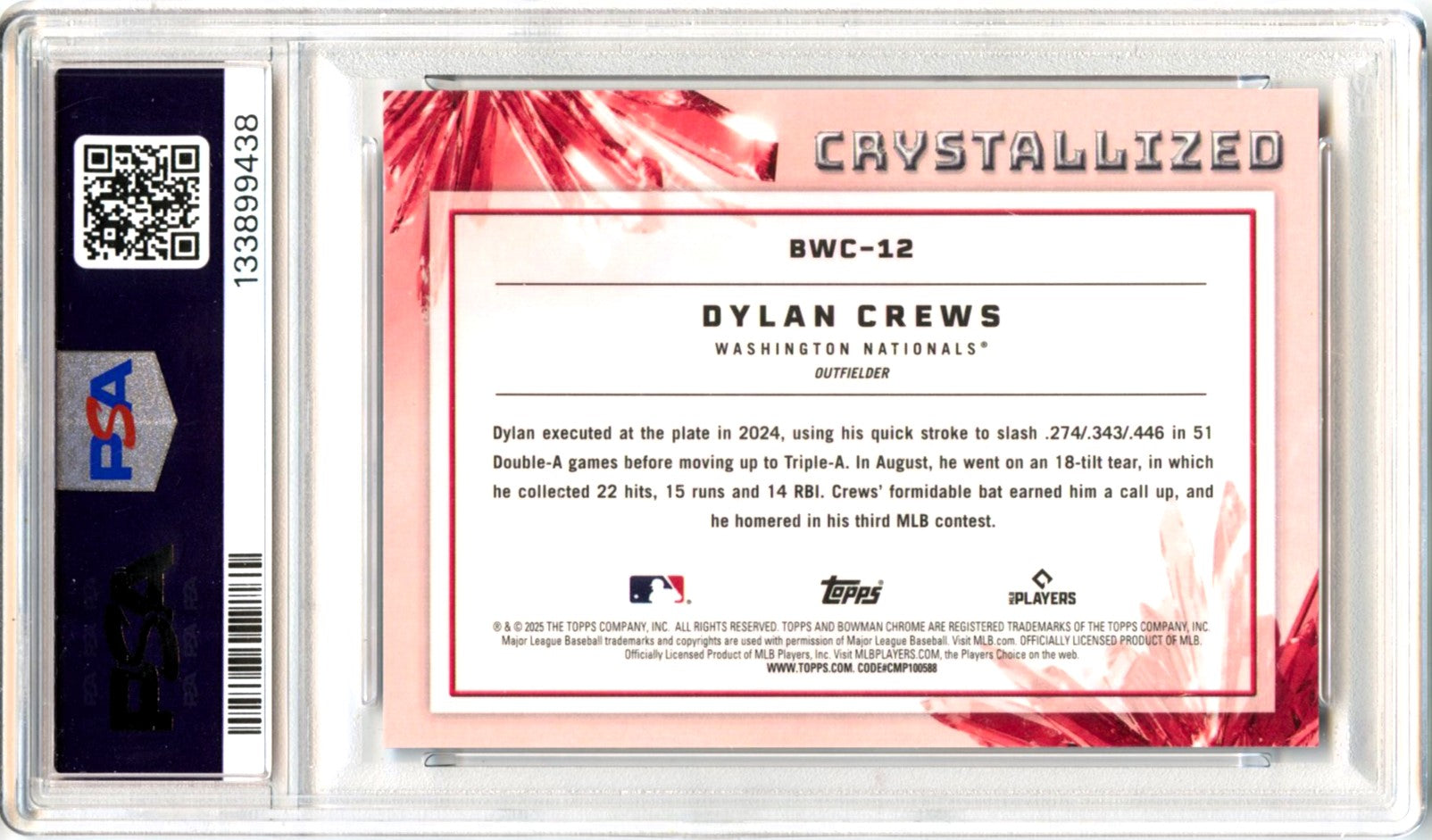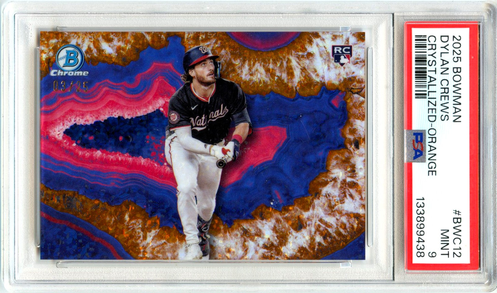 Dylan Crews RC 2025 Bowman Chrome Orange Crystallized Rookie SP 3/25 PSA 9