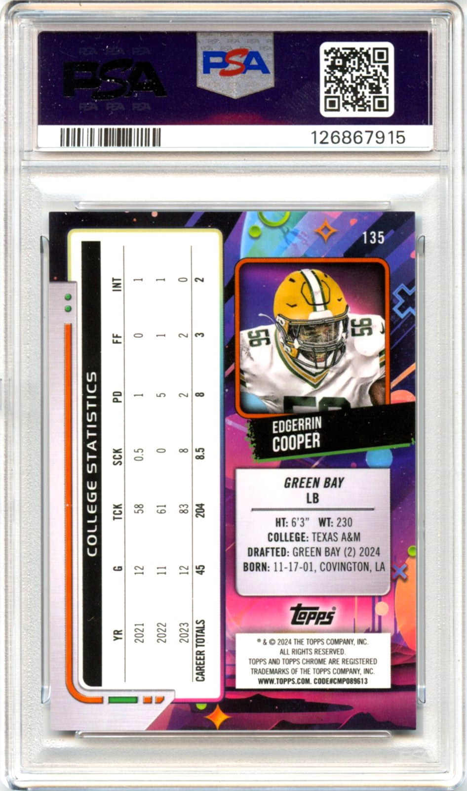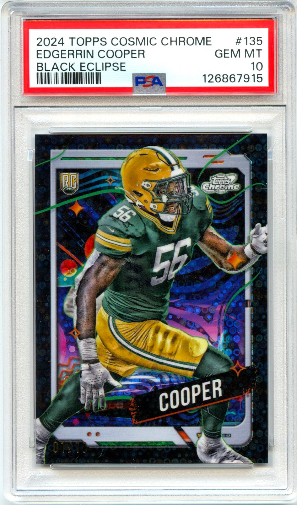 Edgerrin Cooper RC 2024 Topps Cosmic Chrome Black Eclipse Rookie SP 1/10 PSA 10