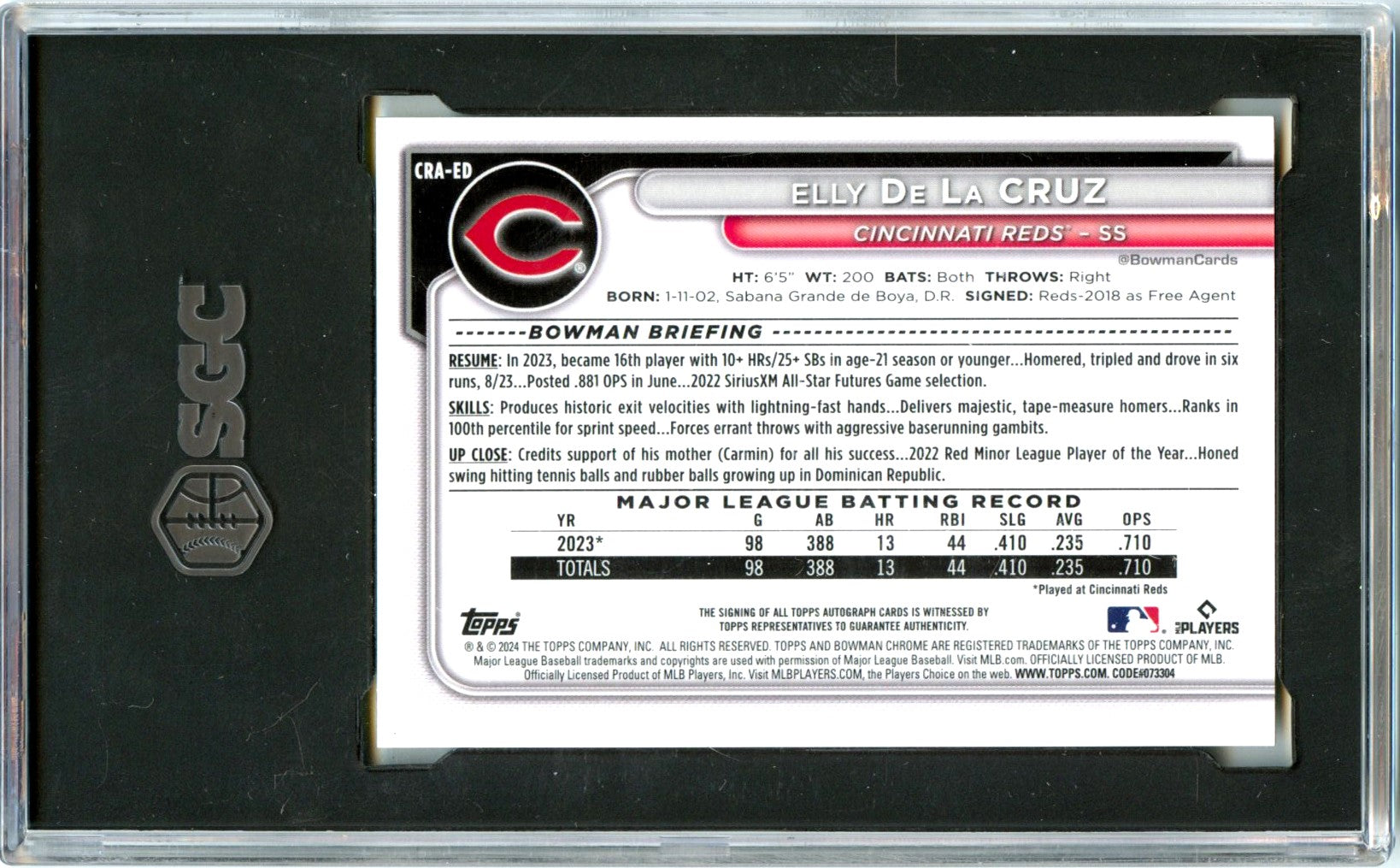 Elly De La Cruz RC 2024 Bowman Chrome Yellow Rookie Auto SP 11/75 SGC 10