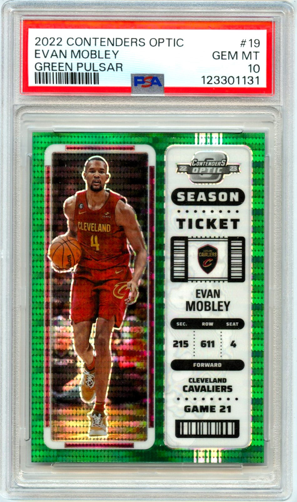 Evan Mobley 2022-23 Contenders Optic Green Pulsar Season Ticket SP 1/25 PSA 10