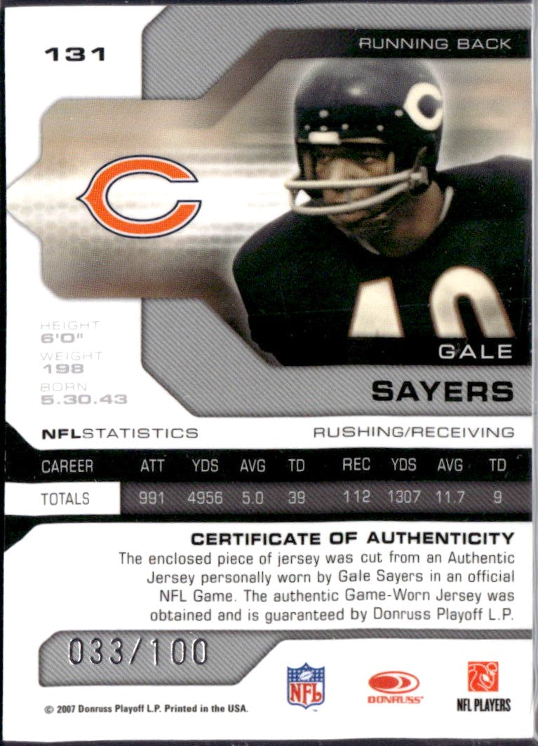 Gale Sayers 2007 Leaf Limited Prime Game Used Patch SP 33/100