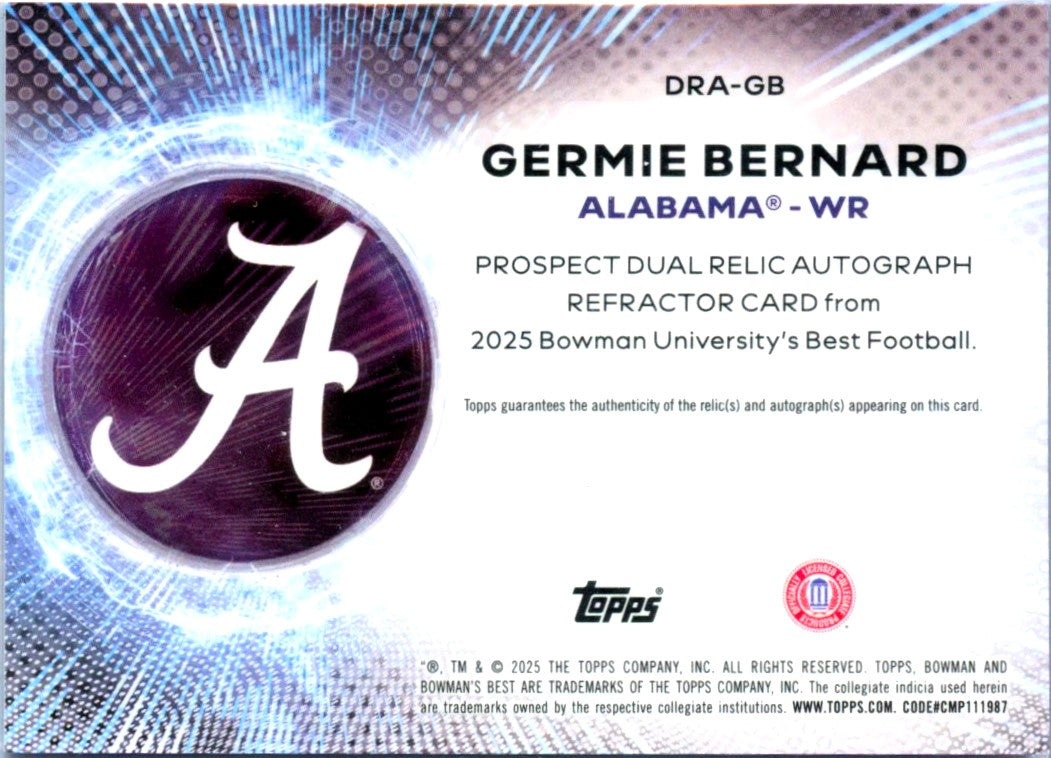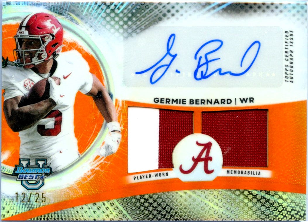 Germie Bernard RC 2025 Bowman U Best Orange Dual Rookie Patch Auto SP 12/25