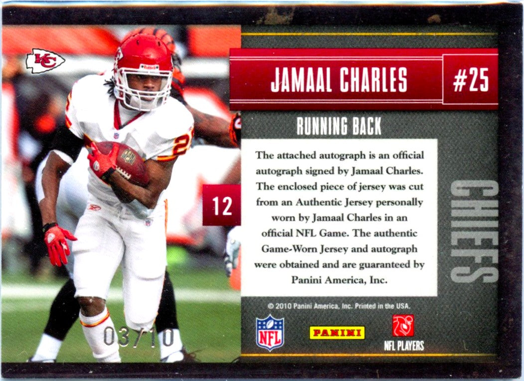 Jamaal Charles 2010 Panini Limited Team Trademarks Game Used Patch Auto SP 3/10