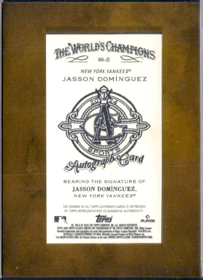 Jasson Dominguez RC 2024 Topps Allen & Ginter Mini Framed Rookie Auto