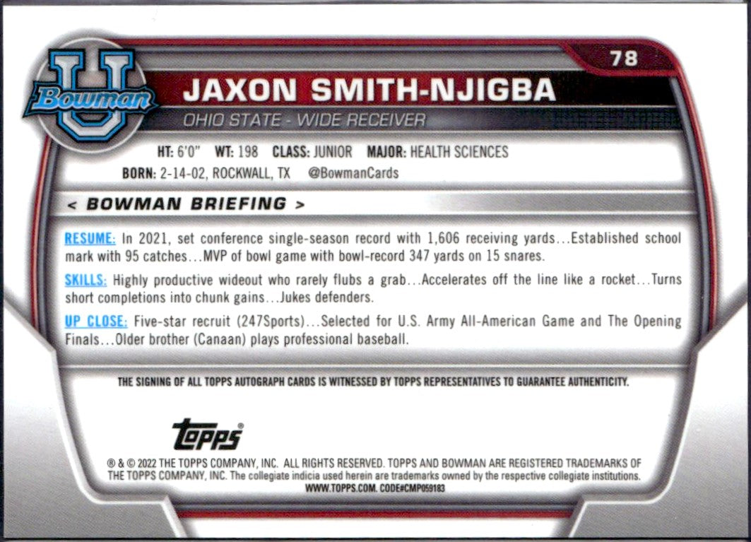 Jaxon Smith-Njigba RC 2022 Bowman U Chrome Rookie Auto #78