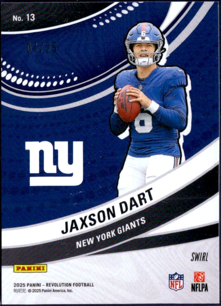Jaxson Dart RC 2025 Panini Revolution Swirl Futures Rookie SP 4/25