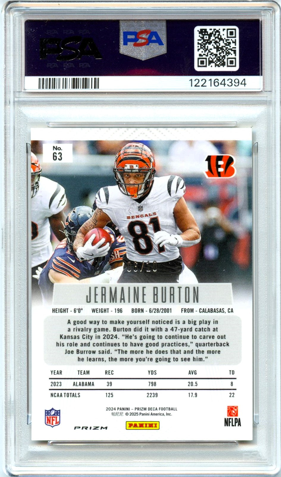 Jermaine Burton RC 2024 Panini Prizm Deca Gold Rookie SP 6/10 PSA 9