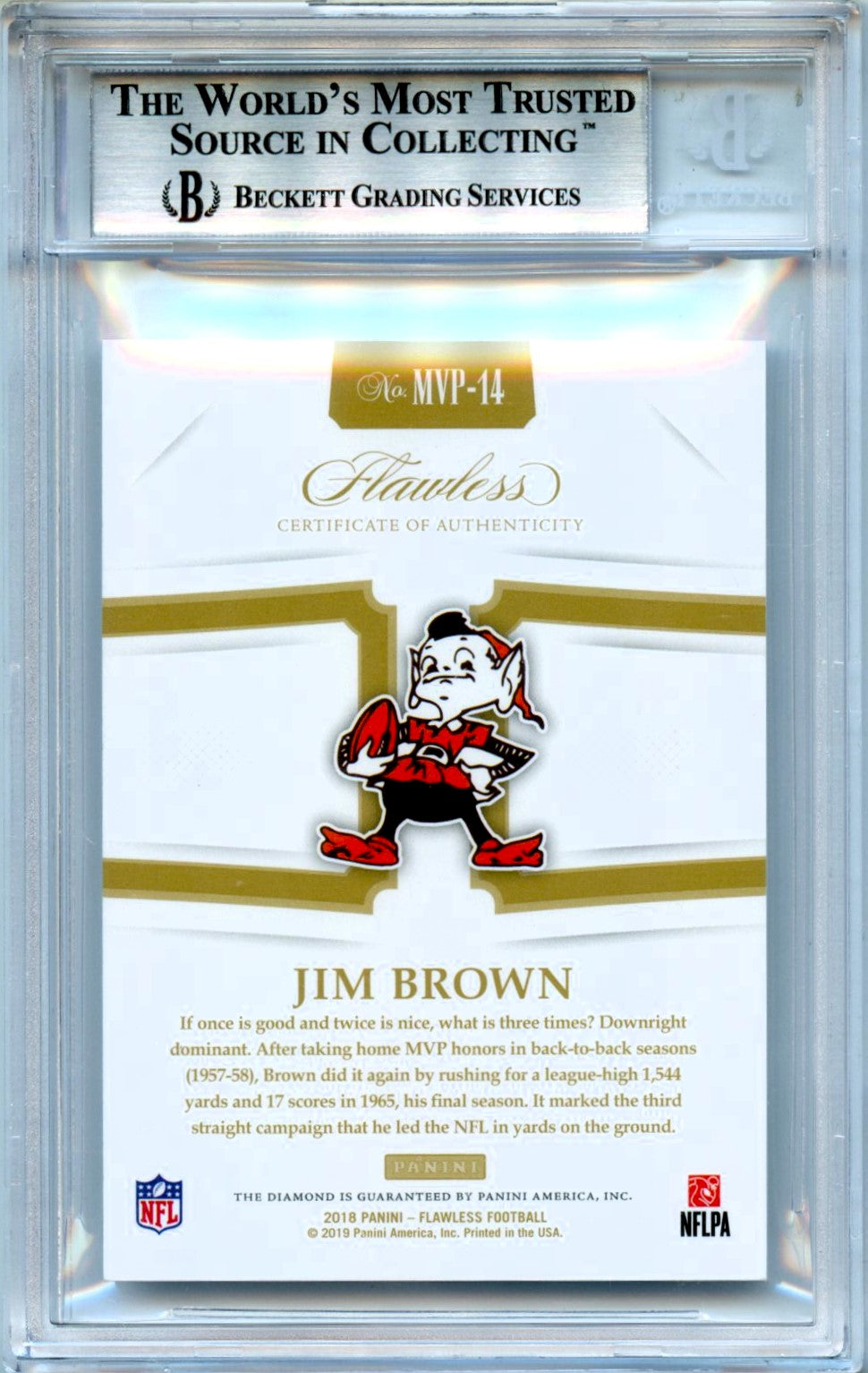 Jim Brown 2018 Flawless Black Chocolate Diamond SP 1/1 BGS 9