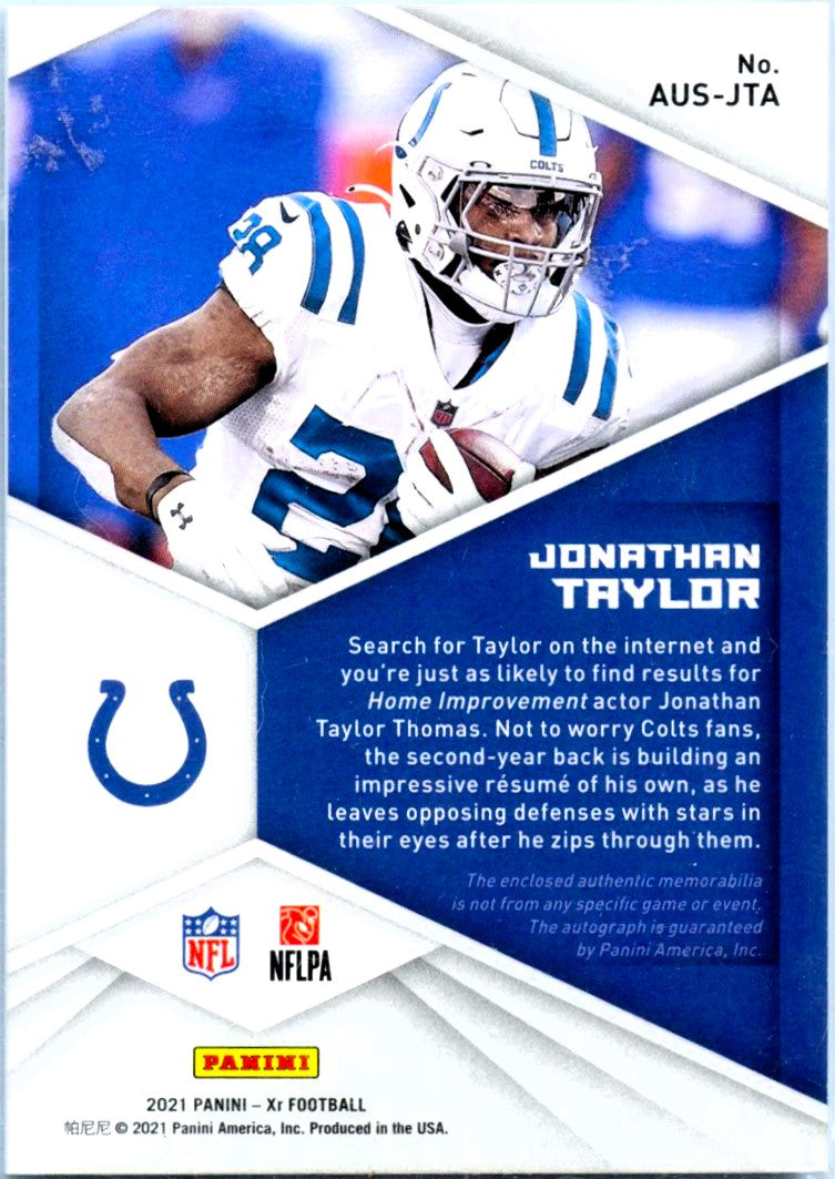 Jonathan Taylor 2021 Panini XR Black Swatches Patch Auto SP 1/1