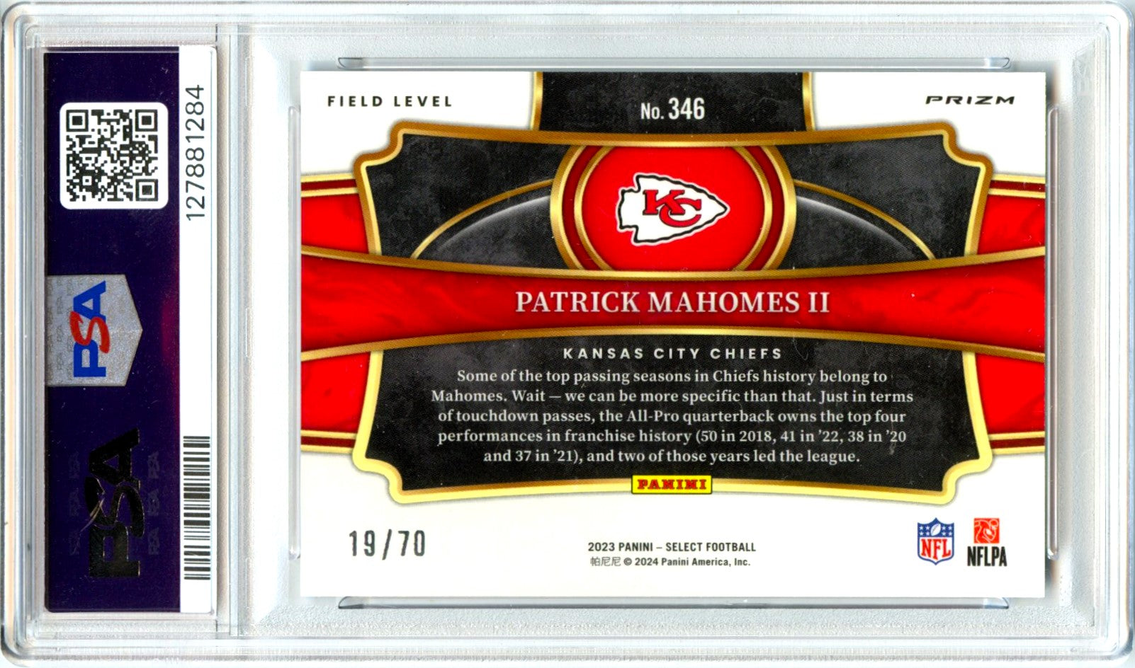 Patrick Mahomes II 2023 Panini Select Field Level Dragon Scale Prizm SP 19/70 PSA 10