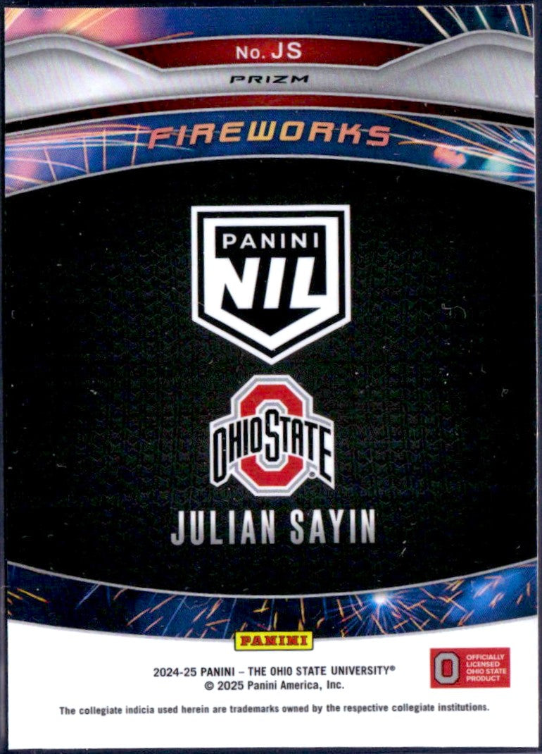Julian Sayin RC 2024 Panini The Ohio State University Prizm White Sparkle Fireworks Rookie SSP
