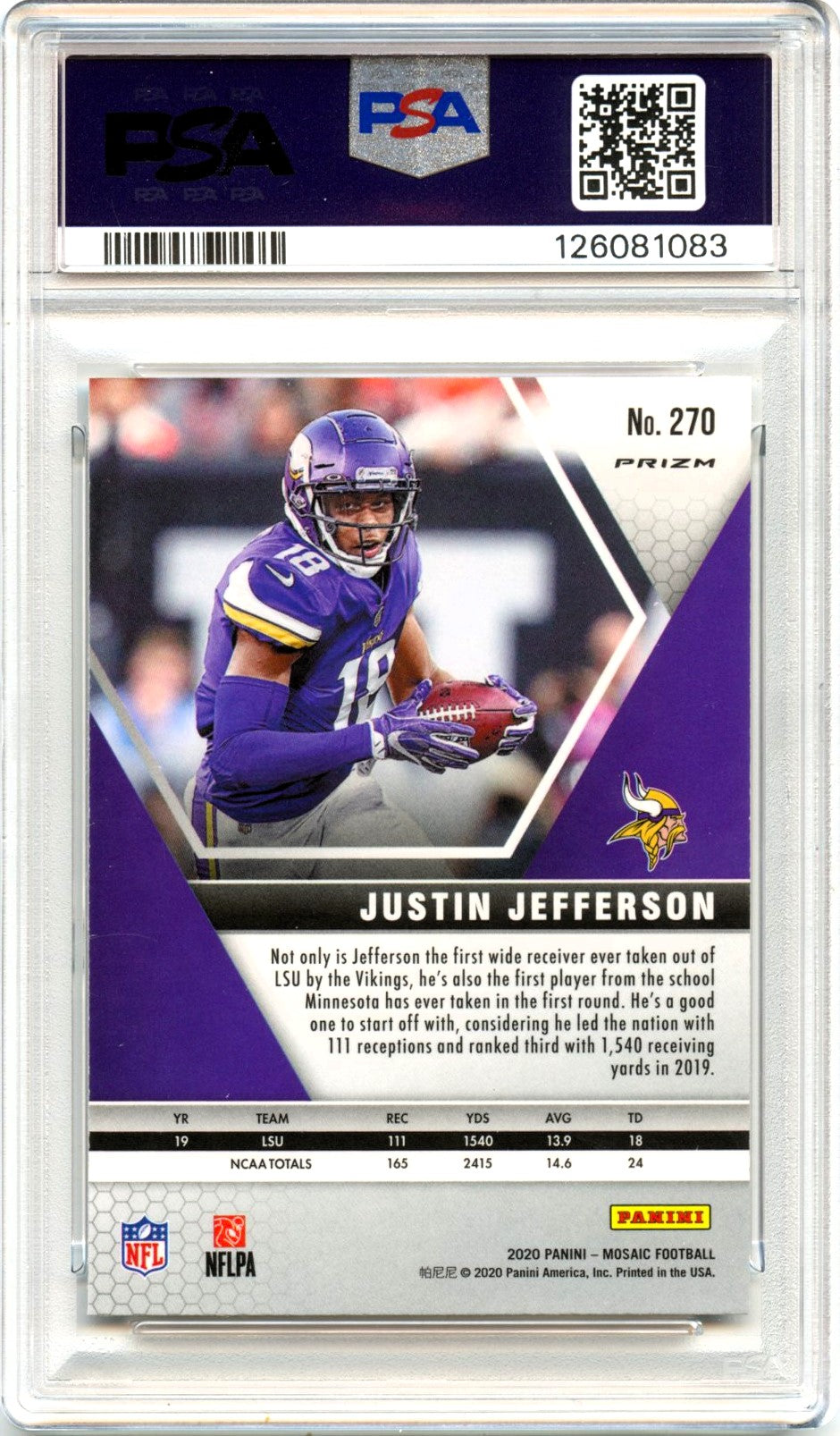 Justin Jefferson RC 2020 Panini Mosaic Silver Prizm Rookie #270 PSA 10