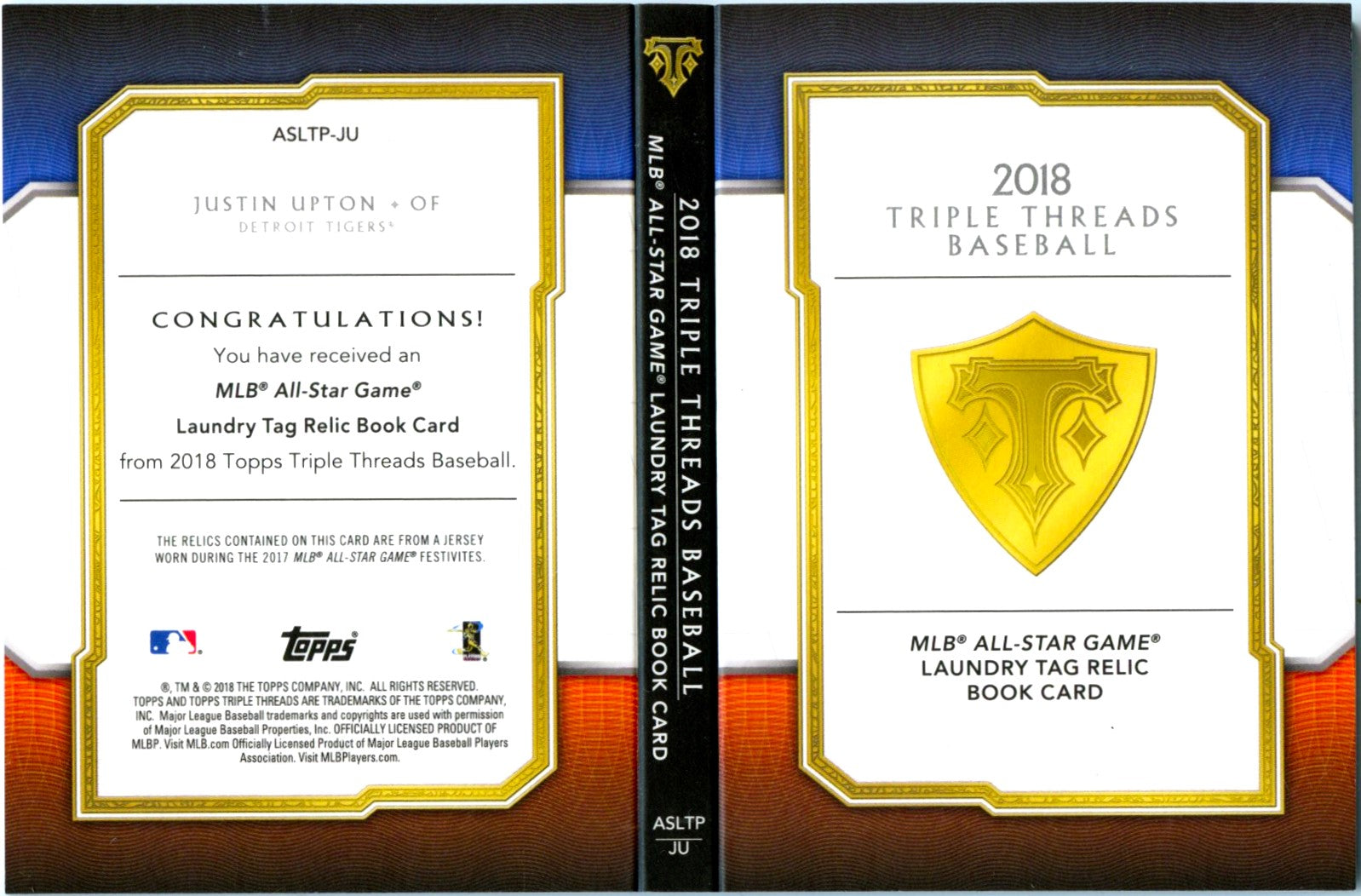 Justin Upton 2018 Topps Triple Threads Game Used All Star Booklet Laundry Tag Patch SP 1/1
