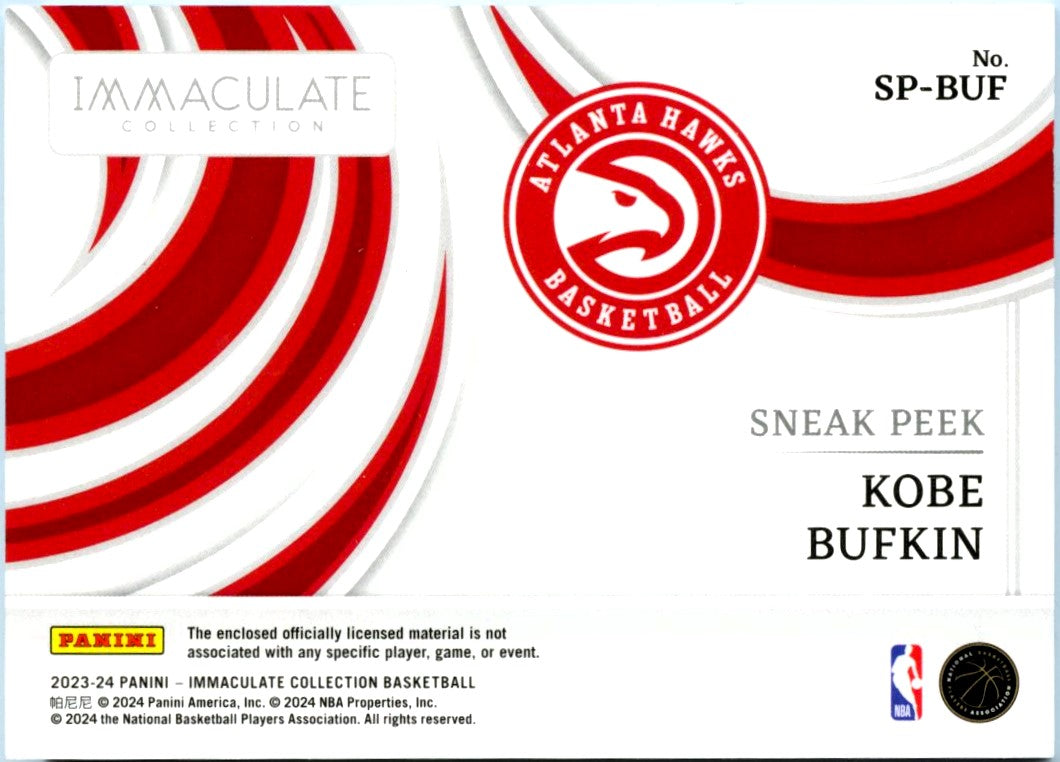 Kobe Bufkin RC 2023-24 Immaculate Platinum Sneak Peek Heel Logo Rookie Patch SP 1/1