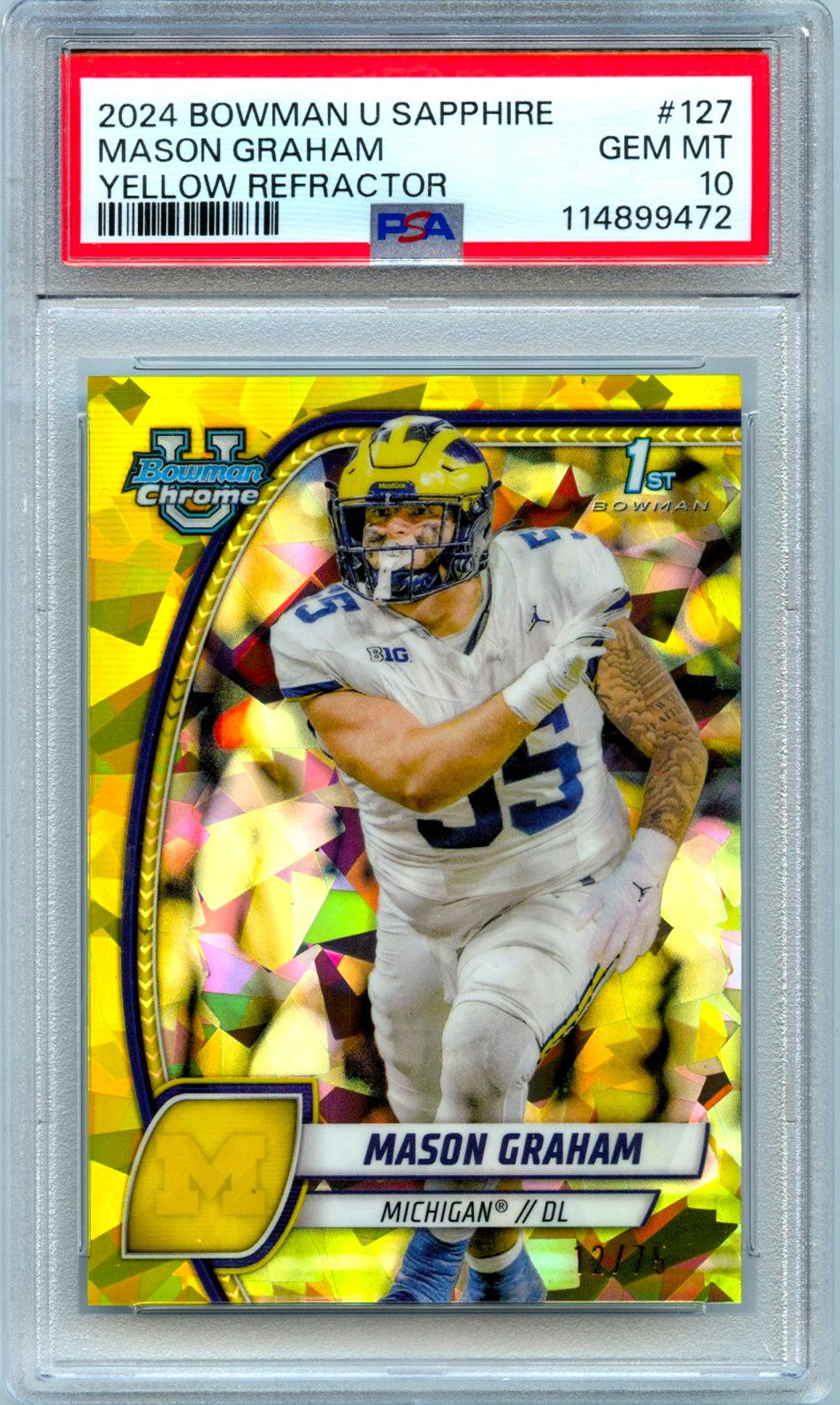 Mason Graham RC 2024 Bowman U Sapphire Yellow Rookie SP 12/75 PSA 10