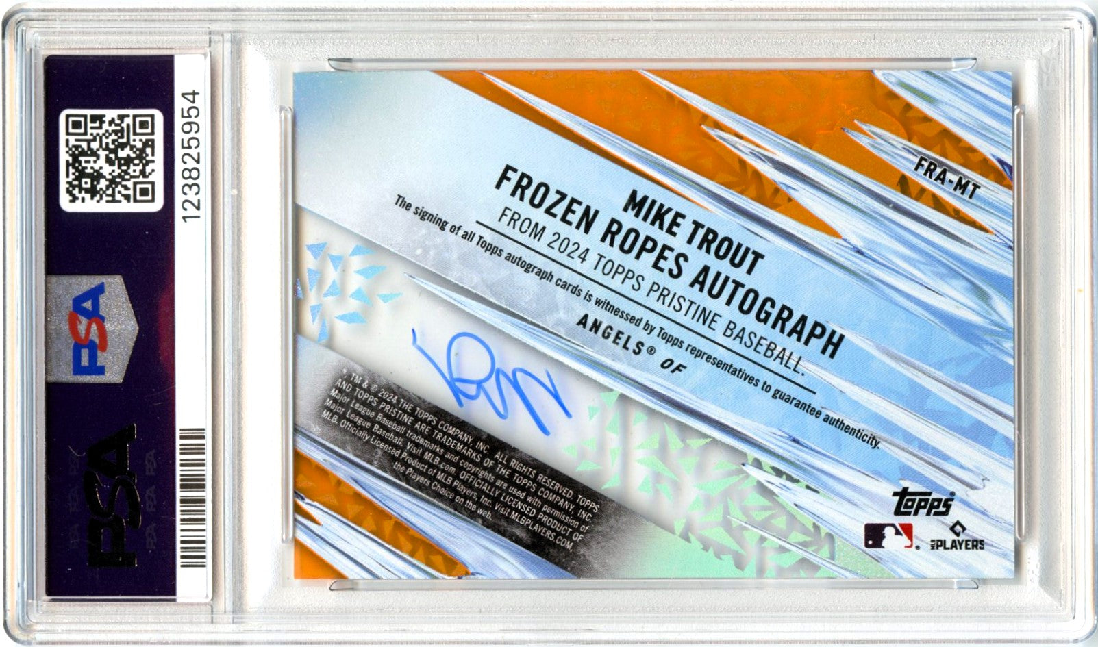 Mike Trout 2024 Topps Pristine Orange Frozen Ropes Auto SP 10/25 PSA 8