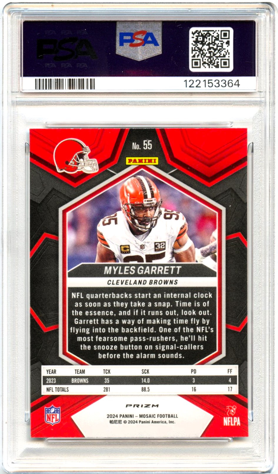 Myles Garrett 2024 Panini Mosaic White Sparkle SSP #55 PSA 10