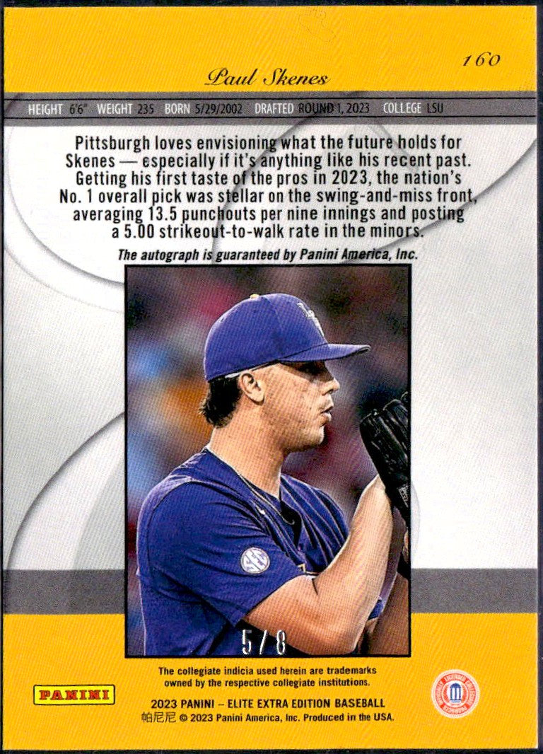 Paul Skenes RC 2023 Panini Elite Extra Edition Gold Explosion Rookie Auto SP 5/8