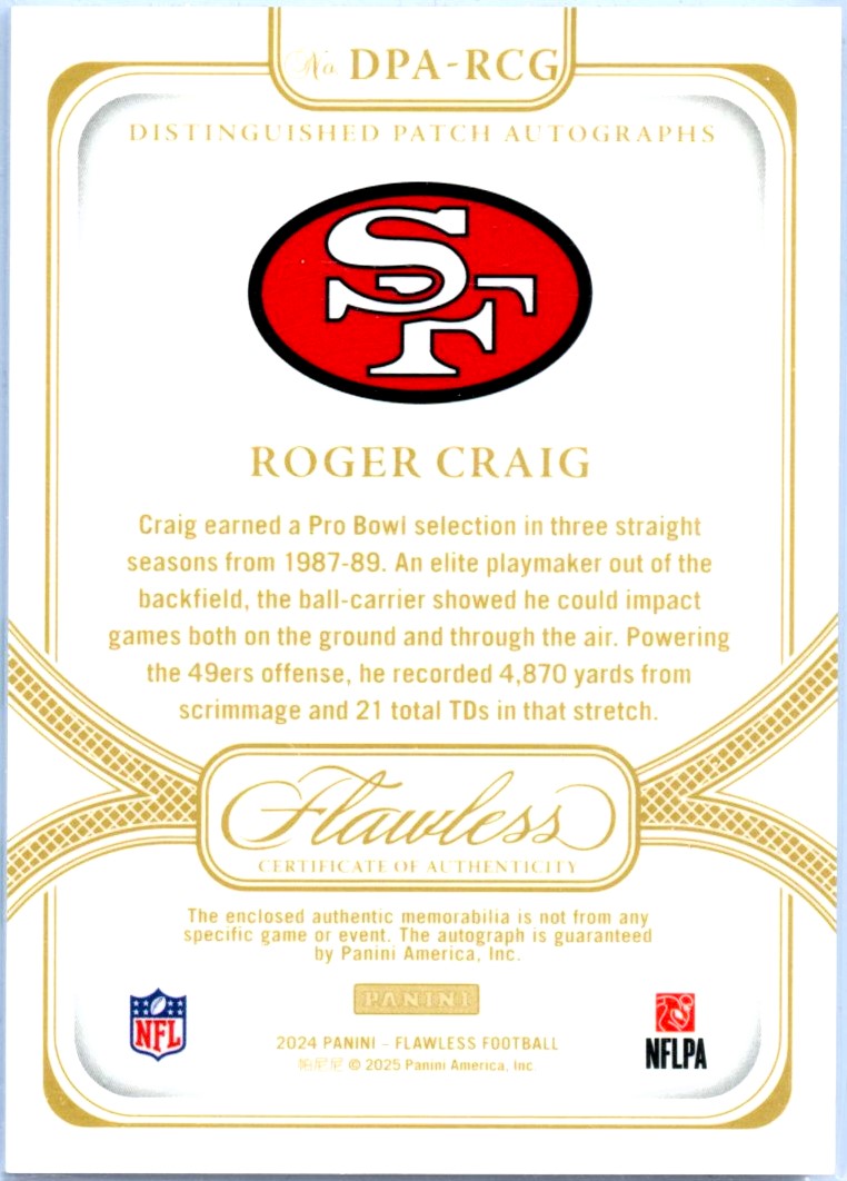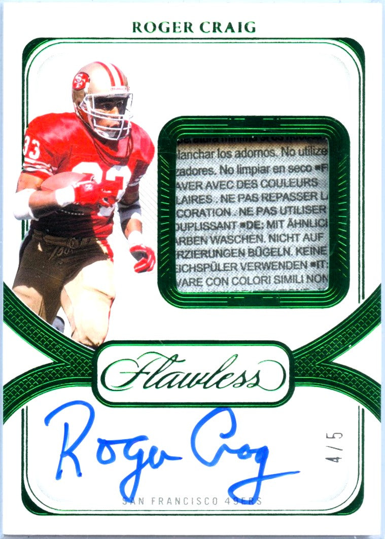 Roger Craig 2024 Flawless Green Laundry Tag Patch Auto SP 4/5
