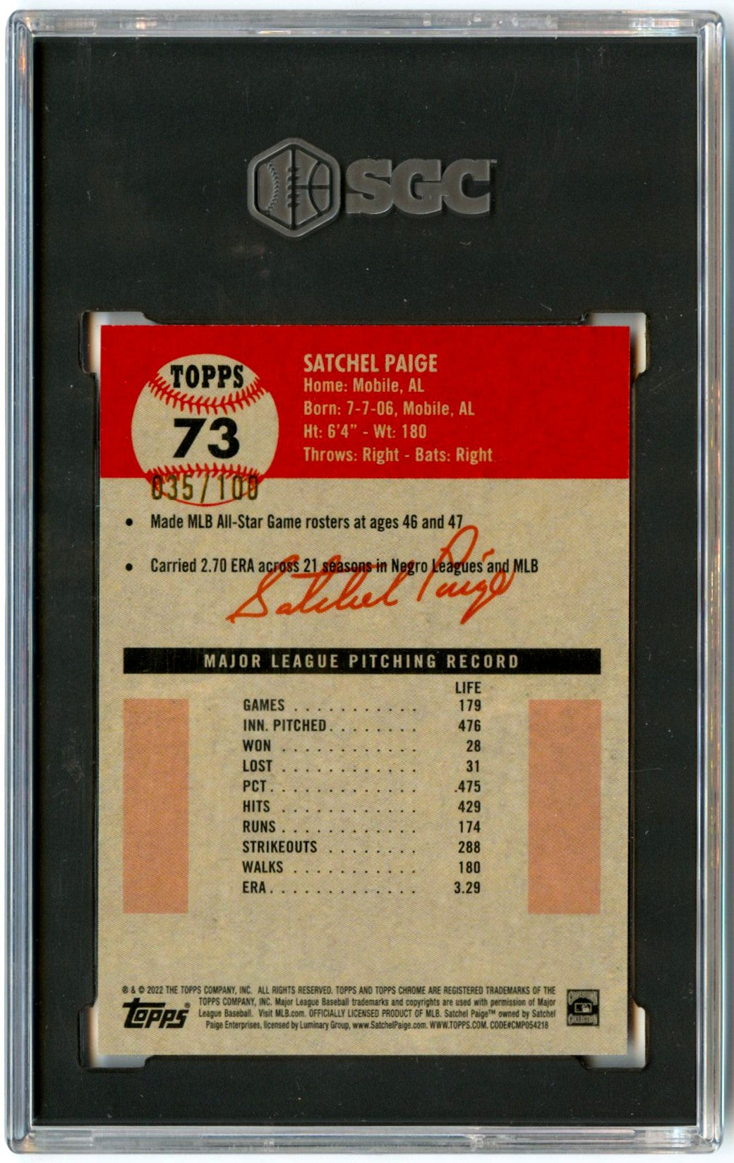 Satchel Paige 2022 Topps Chrome Platinum Red Atomic Refractor 35/100 SGC 10