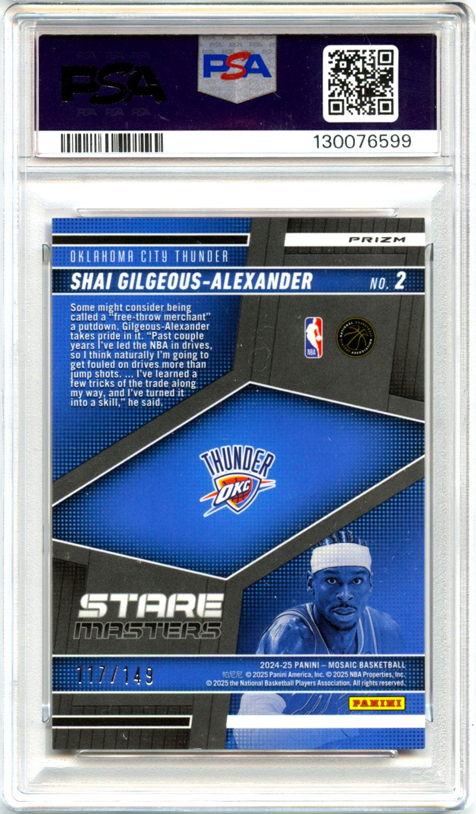 Shai Gilgeous-Alexander 2024-25 Panini Mosaic Pink Stare Masters SP 117/149 PSA 10