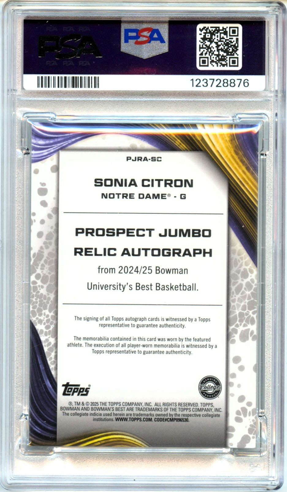 Sonia Citron 2024 Bowman U Best Geometric Rookie Jumbo Patch Auto PSA 8