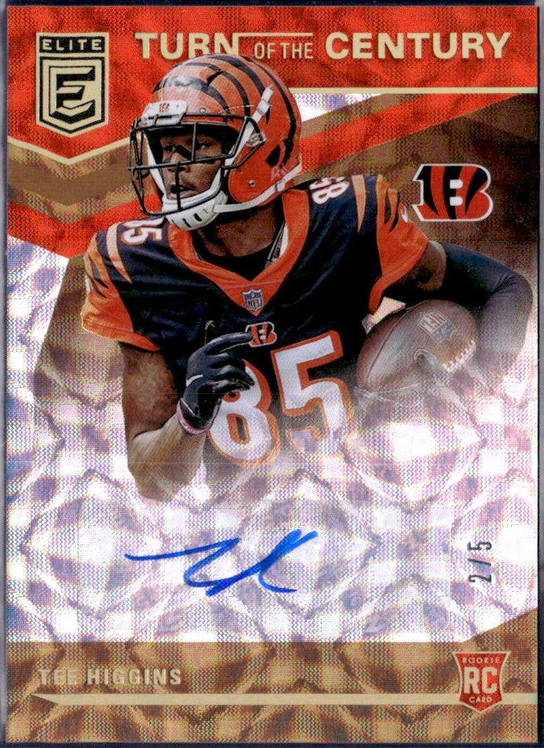 Tee Higgins RC 2020 Donruss Elite Gold Turn Of The Century Rookie Auto SP 2/5