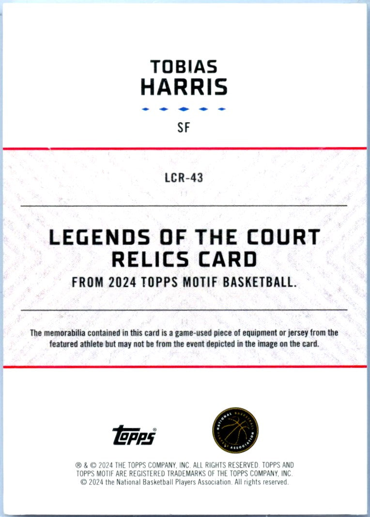 Tobias Harris 2024 Topps Motif Legends Of The Court Game Used Jersey Patch SP 1/1