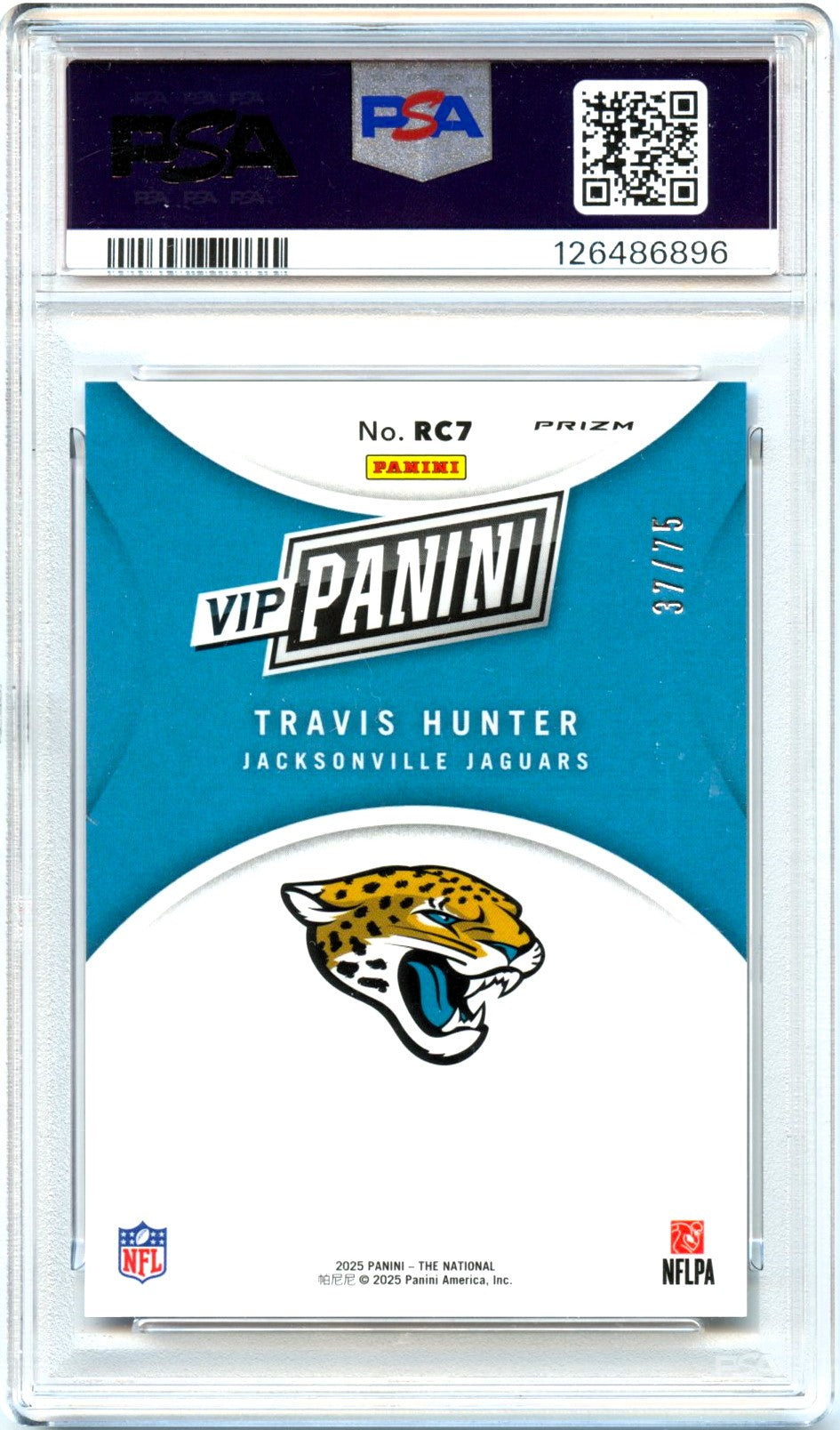 Travis Hunter RC 2025 Panini National Gold Pack Blue Ice Rookie SP 37/75 PSA 10