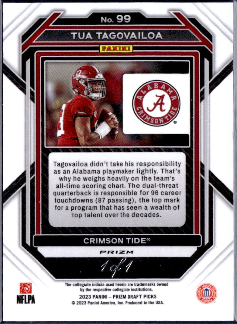 Tua Tagovailoa 2023 Panini Prizm Draft Black Finite SP 1/1