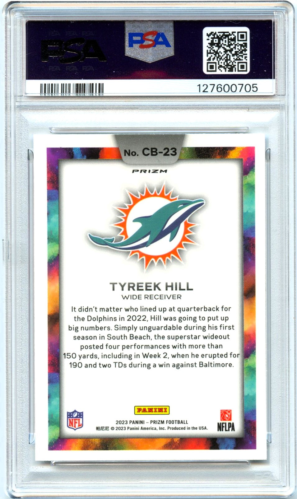 Tyreek Hill 2023 Panini Prizm Color Blast Case Hit SSP PSA 9