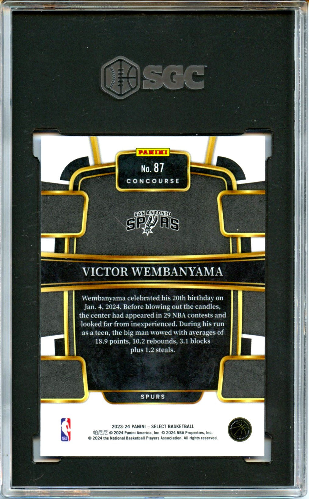 Victor Wembanyama RC 2023-24 Panini Select Concourse Blue Rookie #87 SGC 10