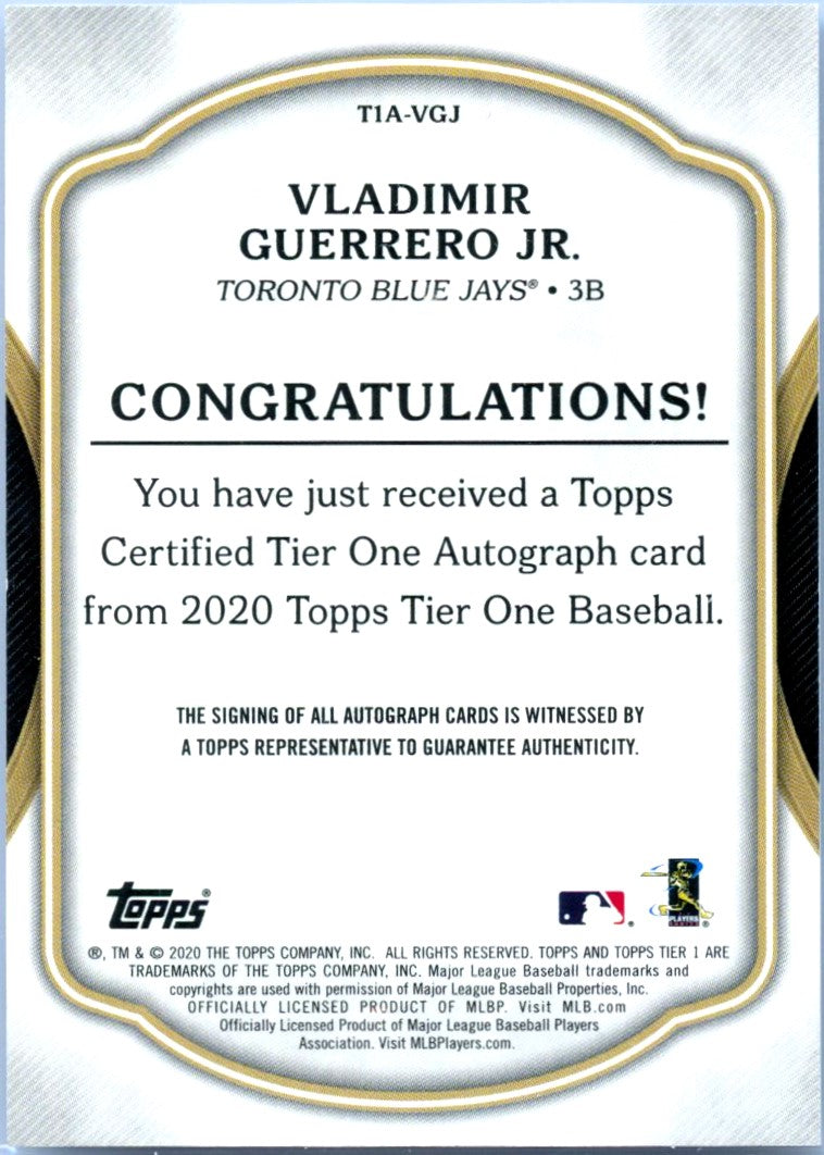 Vladimir Guerrero Jr 2020 Topps Tier One On Card Auto SP 61/150