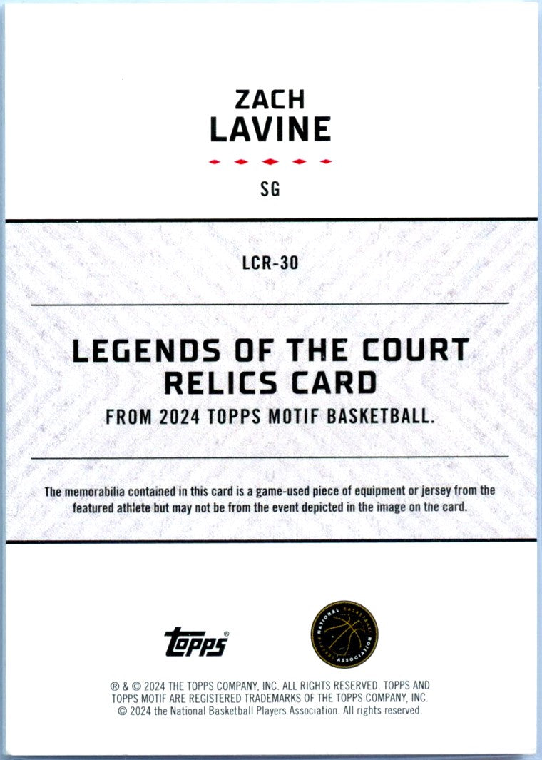 Zach Lavine 2024-25 Topps Motif Legends Of The Court Game Used Patch SP 1/1