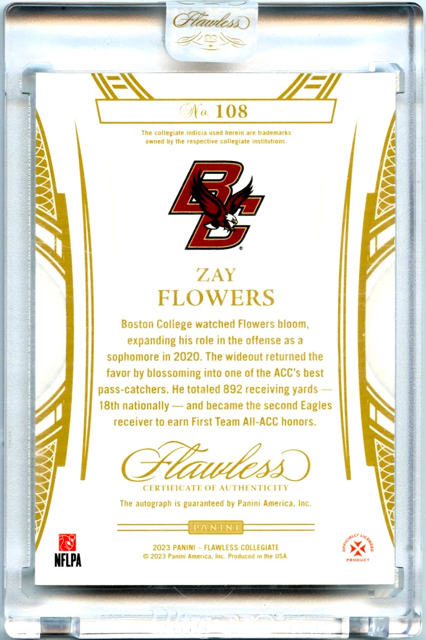 Zay Flowers RC 2023 Flawless Collegiate Holo Gold Rookie Auto SP 3/10
