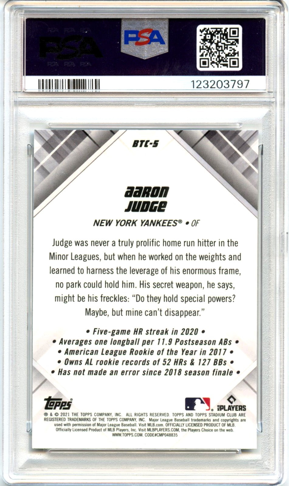 Aaron Judge 2021 Topps Chrome Stadium Club Beam Team PSA 10