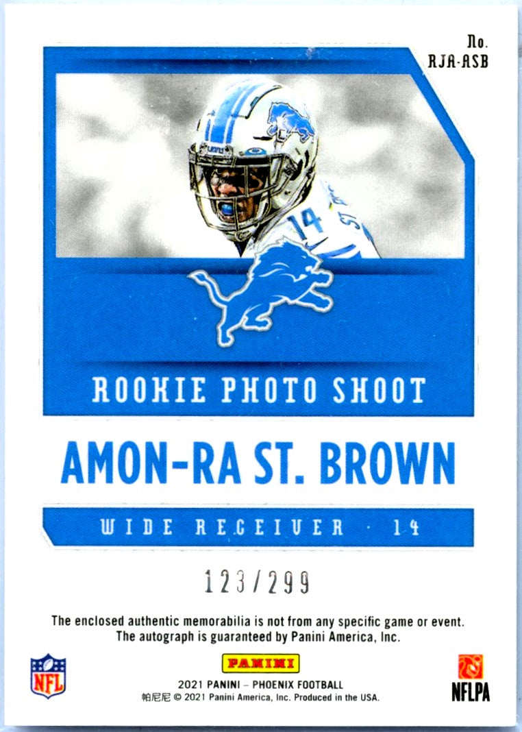 Amon-Ra St Brown RC 2021 Panini Phoenix Silver Rookie Patch Auto SP 123/299