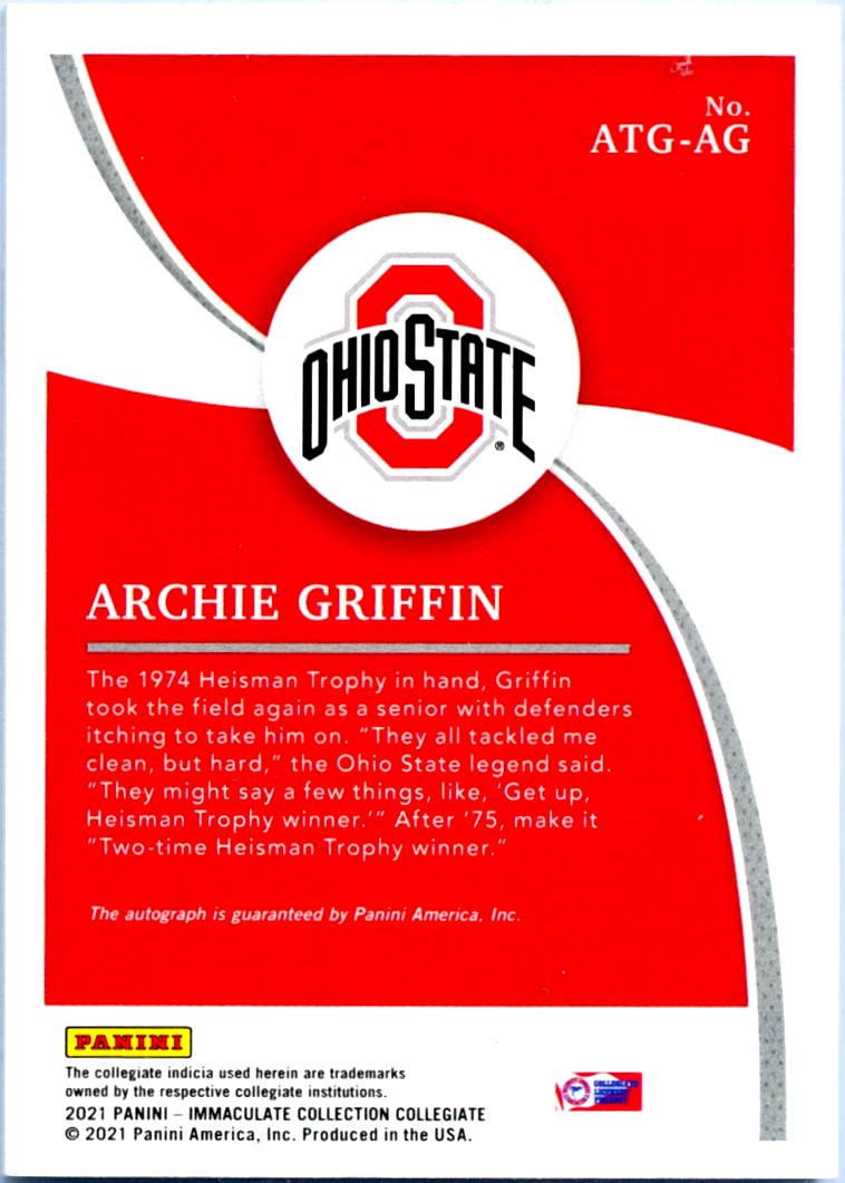 Archie Griffin 2021 Immaculate Collegiate All Time Greats Auto SP 18/99
