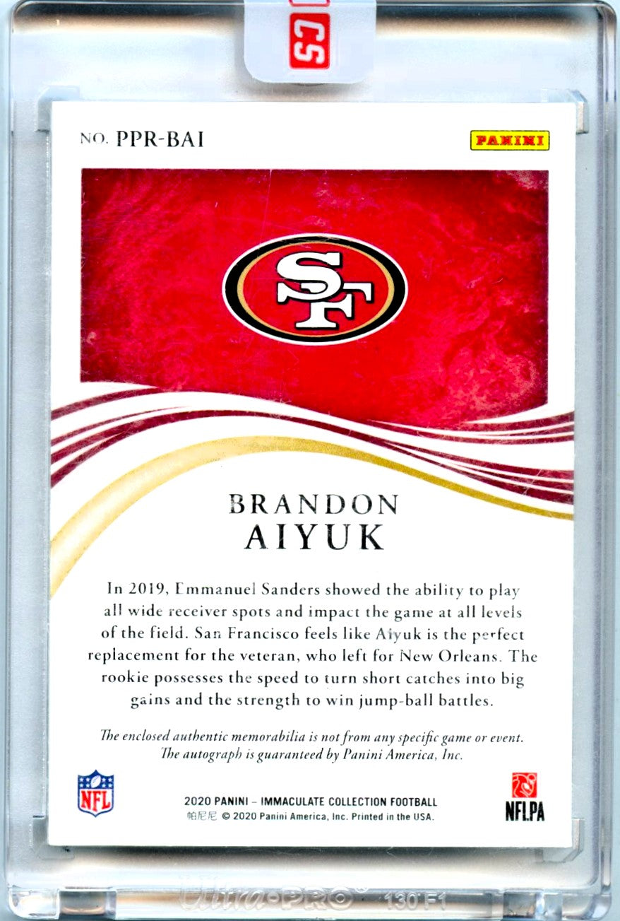 Brandon Aiyuk RC 2020 Immaculate Green Rookie Patch Auto SP 13/14