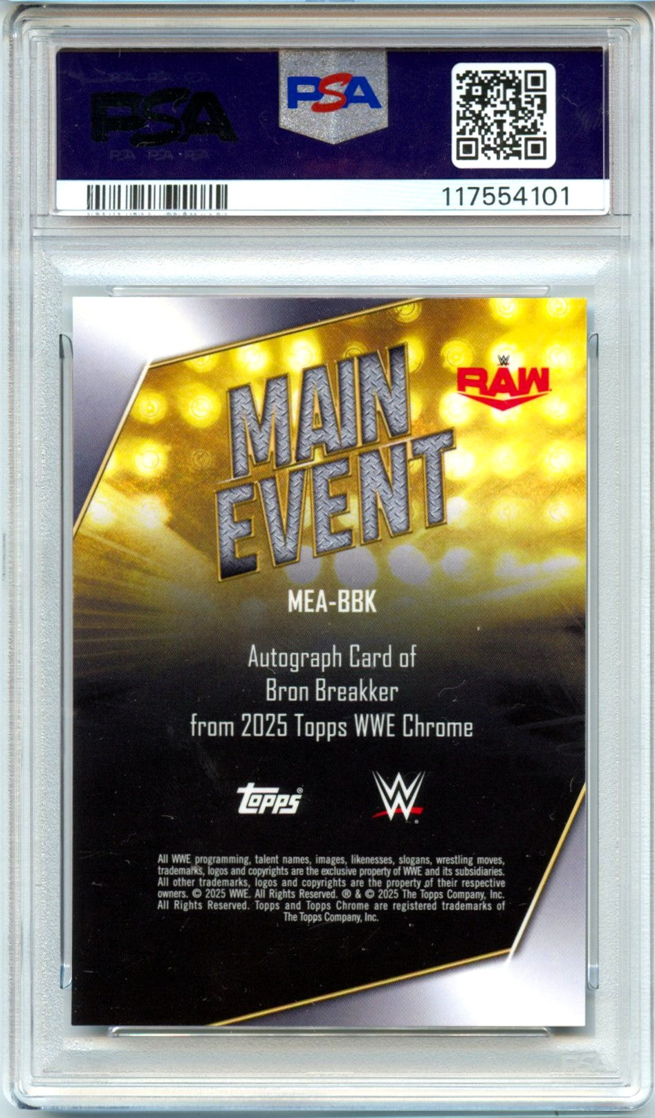 Bron Breakker 2025 Topps Chrome WWE Blue Main Event Auto SP 20/150 PSA 10